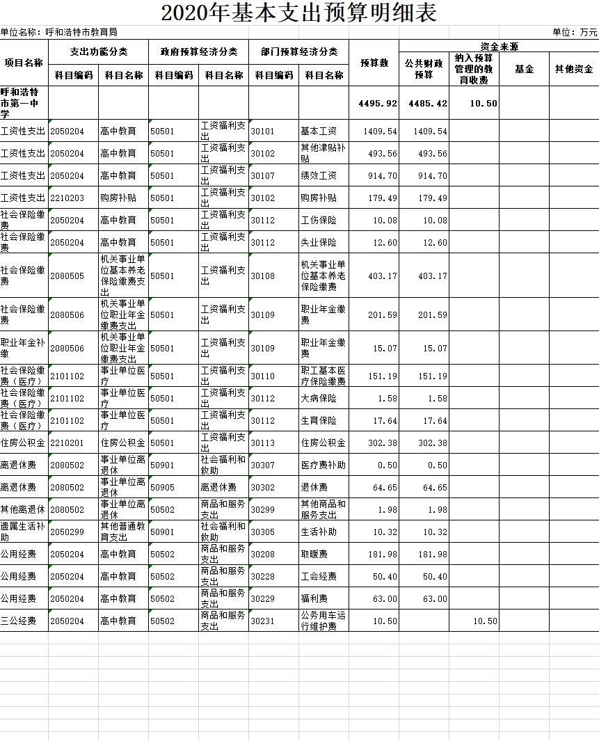 2020年基本支出預(yù)算公開
