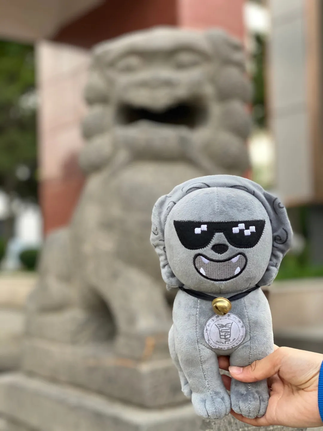 以一中石獅子為原型設(shè)計(jì)的布偶小獅子,采用棉面布料縫制而成,摸起來手感超棒。小布偶周身通體純灰,有著與原型石獅子相同的坐姿與花紋,改變了原來石獅子威武的神態(tài),它咧嘴大笑,露出四顆小白牙,給人一種親切感。一副黑墨鏡遮擋了犀利的眼神,但又呈現(xiàn)出酷帥的形態(tài),胸前別一個(gè)金色的鈴鐺,真是俏皮又可愛。這么萌的小獅子你想不想趕快領(lǐng)取一只呢?