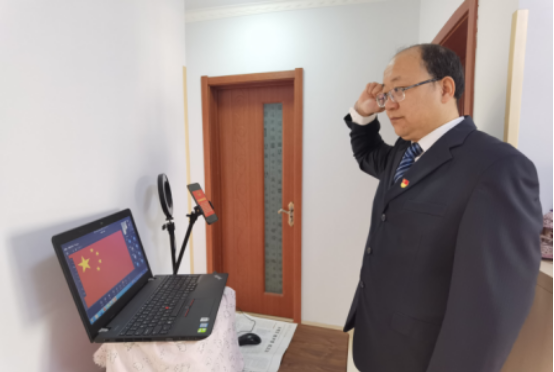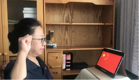 線上宣誓儀式由辦公室主任朱治宇同志領(lǐng)誓, 全體教職工面向屏幕直播窗口,立正高舉右拳,面向屏幕中的國旗,跟隨領(lǐng)誓人進(jìn)行逐句宣誓:“忠于中華人民共和國憲法、維護(hù)憲法權(quán)威,履行法定職責(zé),忠于祖國、忠于人民,恪盡職守、廉潔奉公,接受人民監(jiān)督,為建設(shè)富強(qiáng)民族文明和諧美麗的社會主義現(xiàn)代化強(qiáng)國努力奮斗!”