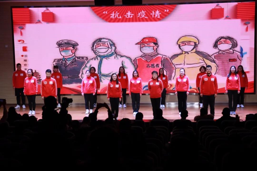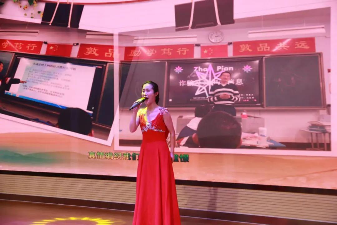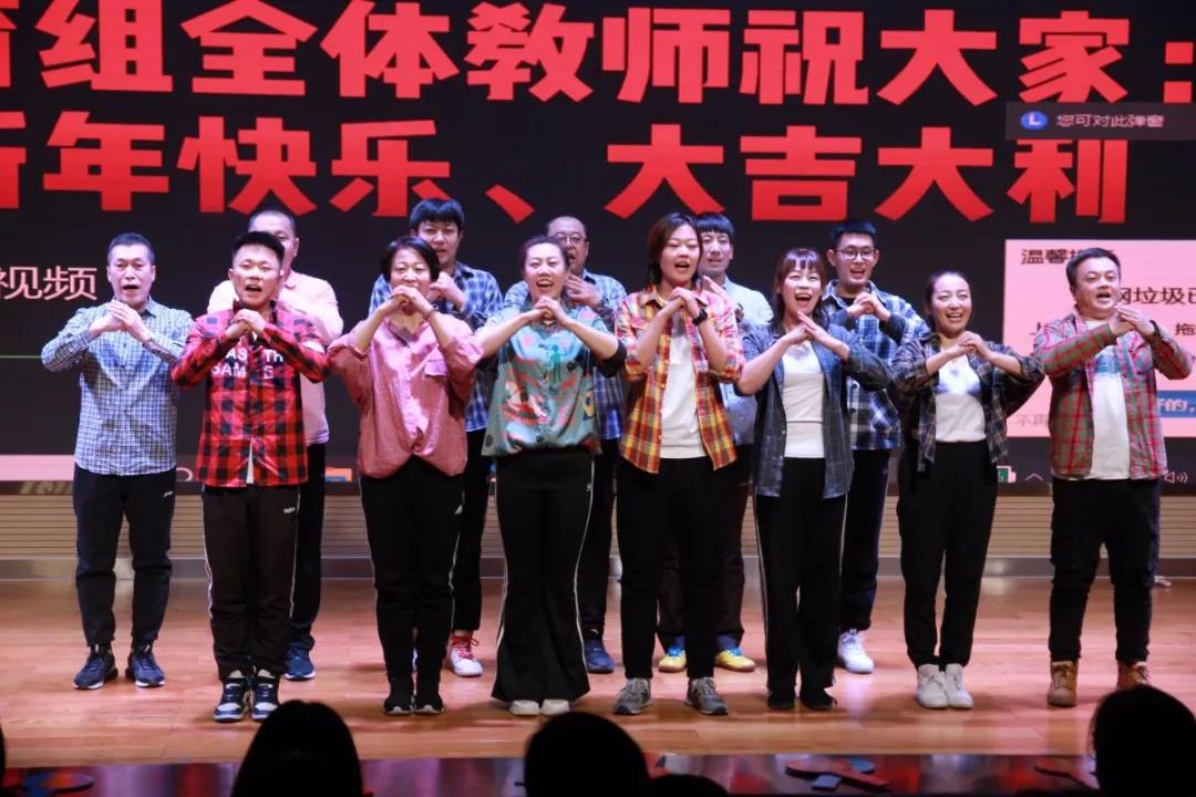我校全體行政人員最后帶來了《不忘初心》團體節(jié)目,在副校長王永春、黨辦主任張霄云、辦公室副主任朱治宇、總務處主任杜彬、國際部副主任李向京、學生處副主任丁永亮抑揚頓挫的朗誦之后,由副校長李剛、創(chuàng)新實驗室馬麗婷老師的領(lǐng)唱及全體行政人員恢弘大氣的合唱完美詮釋了老師們對教育情懷和責任的堅定,為整場晚會畫上了圓滿的句號。