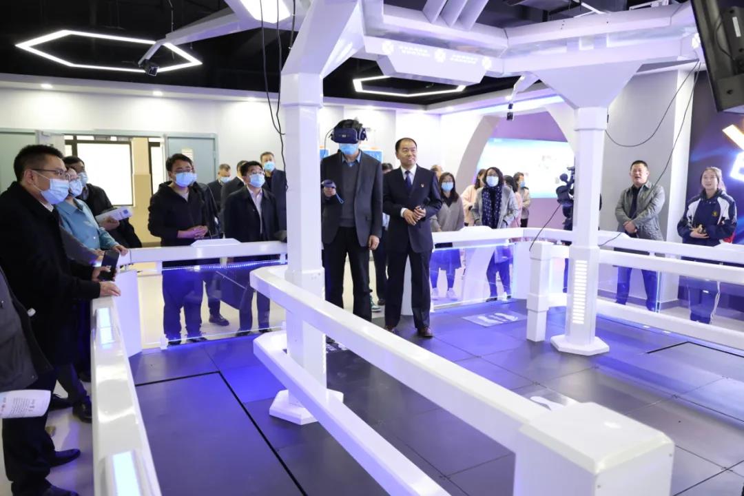在博雅樓內(nèi),參觀特色課程開(kāi)展情況及藝術(shù)教育成果展示,現(xiàn)場(chǎng)觀摩音樂(lè)、舞蹈課、心理健康教育、版畫(huà)、國(guó)畫(huà)課,參觀學(xué)生發(fā)展指導(dǎo)中心。在科技體驗(yàn)中心體驗(yàn)基礎(chǔ)物理、航天、VR三大展區(qū)120余件展品和VR互動(dòng)。