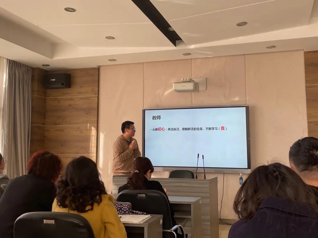 馮思同老師從“工作與生活的關系”角度出發(fā),帶領教研組成員一起重溫了職業(yè)的初心,講述了與學生產(chǎn)生共鳴的心理歷程,同時在教學方面提出了要重視基本概念的解讀與學習。