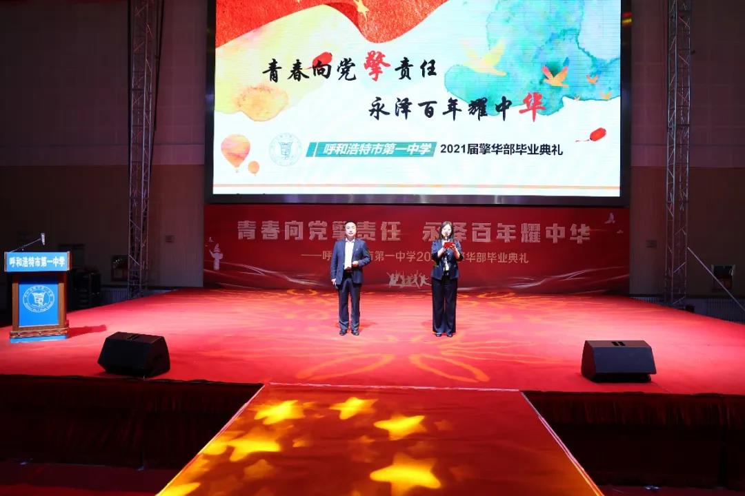 2021年6月3日上午8時(shí),呼和浩特市第一中學(xué)2021屆高三擎華部“青春向黨擎責(zé)任,永澤百年耀中華”主題畢業(yè)典禮在呼市一中體育館盛大開幕,擎華師生齊聚一堂,共同見(jiàn)證屬于我們的時(shí)代芳華。教務(wù)處李軼副主任、學(xué)生處丁永亮主任主持畢業(yè)典禮。