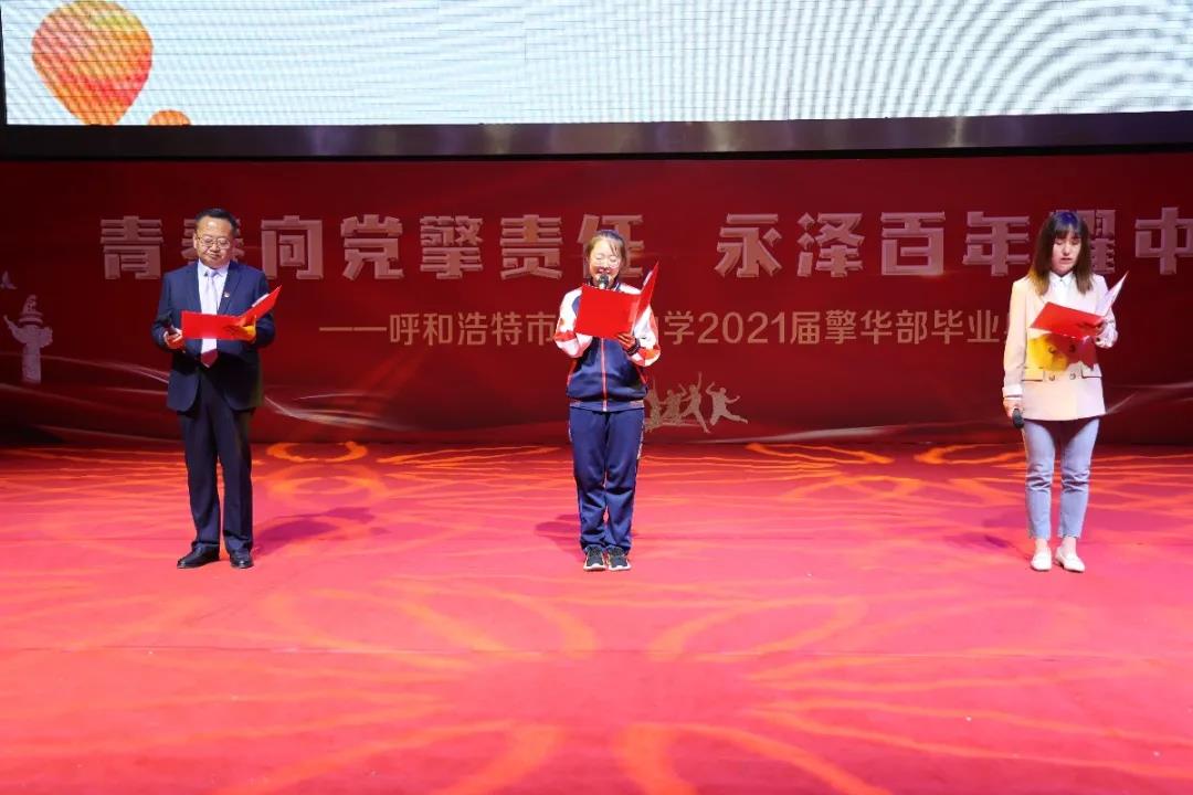 從上海石庫(kù)門,到嘉興南湖紅船;從贛水閩山的蜿蜒小道,到溝壑縱橫的黃土高原,征程未有窮期;從行走青春,到植根青春,從跨越成人門,到魚躍龍門,三年努力,未有窮期。呼市一中副校長(zhǎng),高三年級(jí)畢業(yè)班領(lǐng)導(dǎo)小組組長(zhǎng)張浩韞,宣讀優(yōu)秀畢業(yè)生表彰決定及名單。