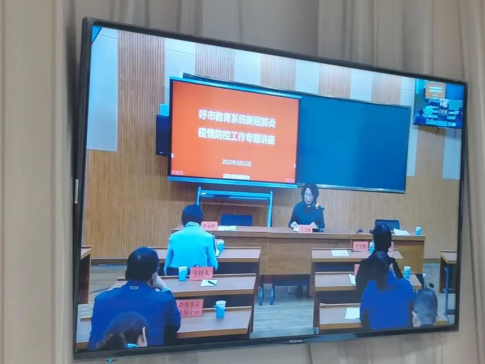 2022年3月22日上午9∶30,呼和浩特市教育局召開全市教育系統(tǒng)新冠肺炎疫情防控工作視頻會(huì)議。我校在興華樓六樓錄播教室設(shè)立分會(huì)場(chǎng),校黨委書記、校長(zhǎng)馬波、副校長(zhǎng)王永春、學(xué)校疫情防控各小組負(fù)責(zé)人和部門相關(guān)工作人員參加會(huì)議。