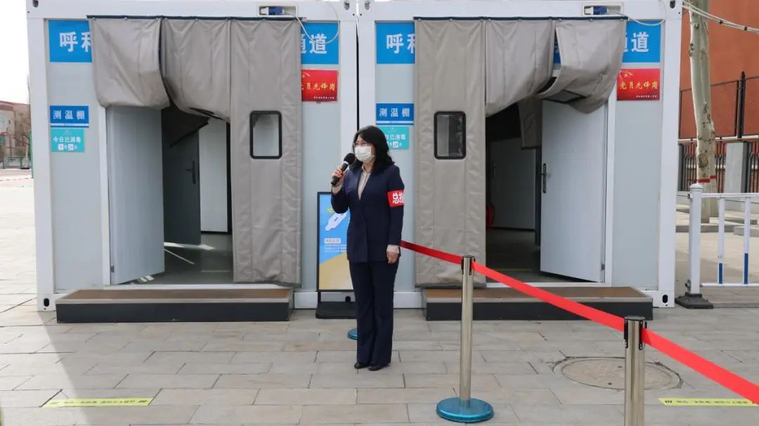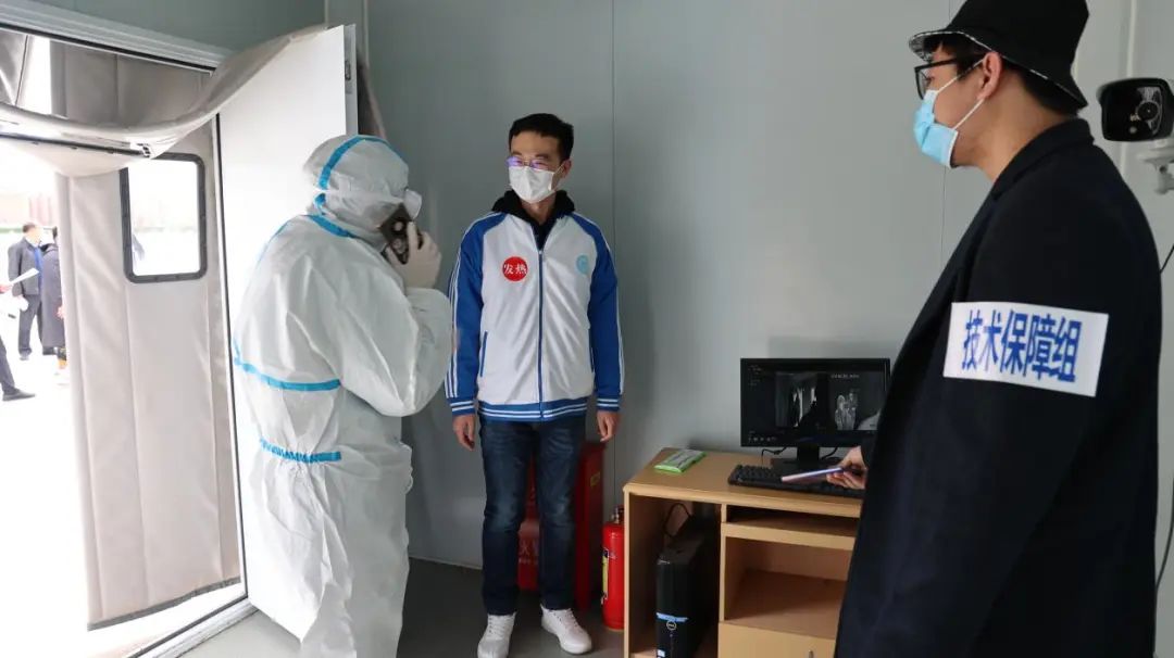 模擬師生北門(mén)入校,經(jīng)測(cè)溫通道測(cè)溫,有師生出現(xiàn)發(fā)熱癥狀的應(yīng)急處理。