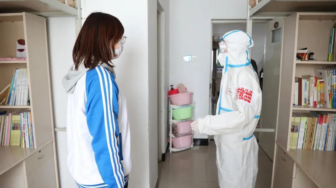 校醫(yī)(二級(jí)防護(hù))將出現(xiàn)新冠肺炎確診病例、無(wú)癥狀感染者、疑似病例、初篩陽(yáng)性、密集、次密接情況師生員工穿著防護(hù)服(二級(jí)防護(hù))帶至隔離室。同時(shí)對(duì)校園進(jìn)行封閉管理,暫停教育教學(xué)工作,全體師生教室(辦公室)待命;班主任、心理老師做好學(xué)生情緒安撫工作并通知家長(zhǎng)。做好師生在校封控期間的生活保障,等待上級(jí)防疫部門(mén)的進(jìn)一步指示。