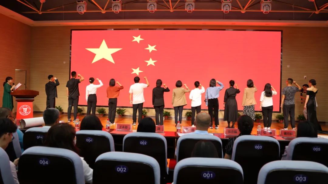 風(fēng)勁好揚(yáng)帆,聚義正當(dāng)時(shí)。百年一中,薪火相傳,青藍(lán)相繼,逐夢(mèng)共遠(yuǎn)。由學(xué)委主任仝靜領(lǐng)誓,我校2022級(jí)新教師進(jìn)行入職宣誓。