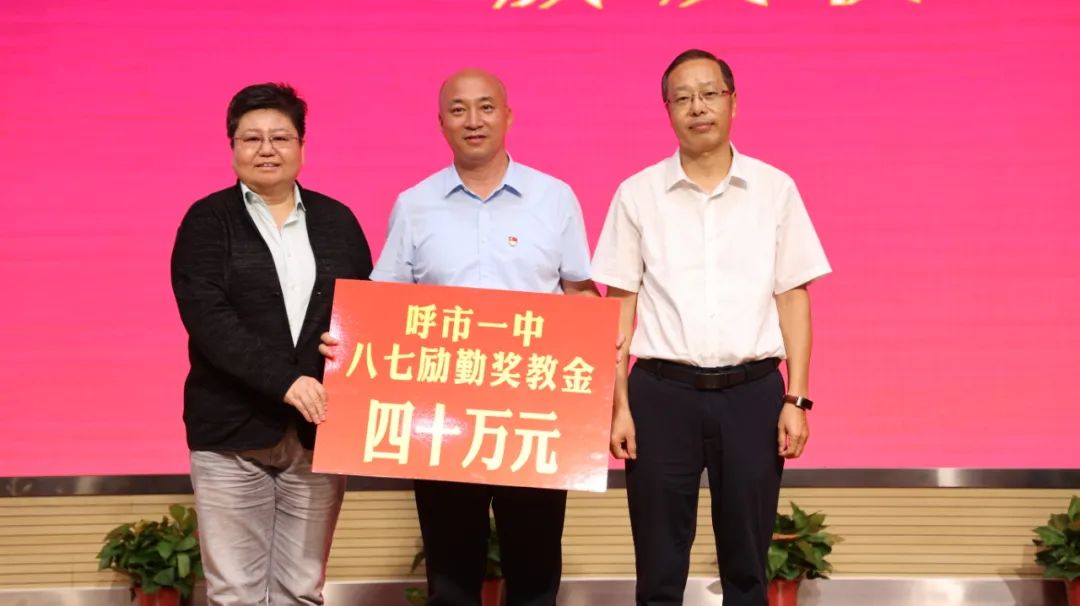 我校87屆校友設(shè)立“呼市一中八七勵(lì)勤獎(jiǎng)教金”,以表彰我校教育工作者的辛勤付出。我校87屆高中4班楊永峰先生和虎彥女士到現(xiàn)場(chǎng)為大家送上了教師節(jié)祝福,虎彥女士為大家獻(xiàn)歌《好大一棵樹(shù)》。