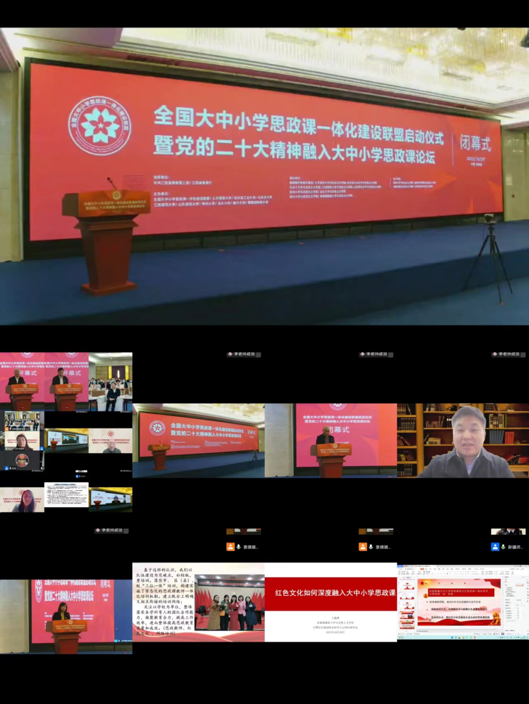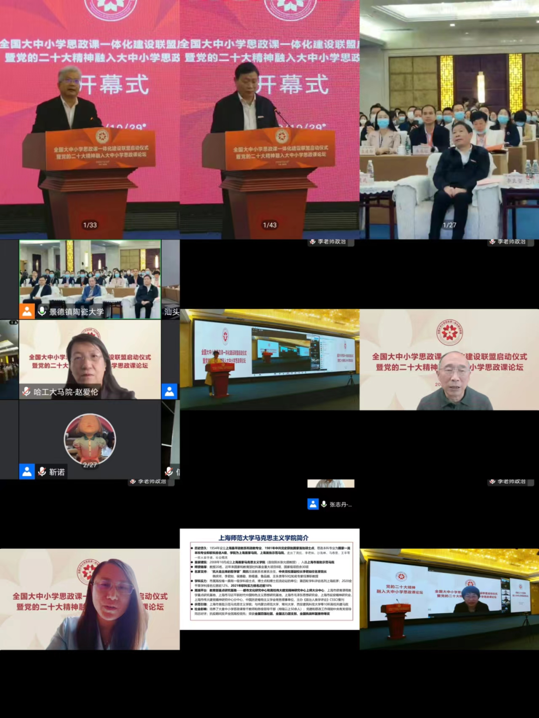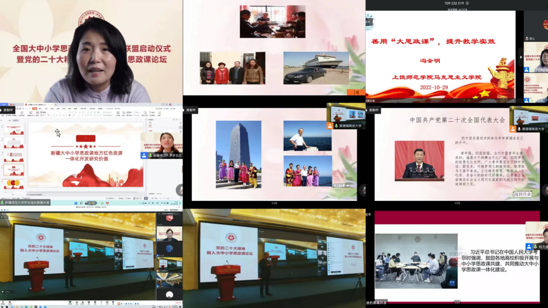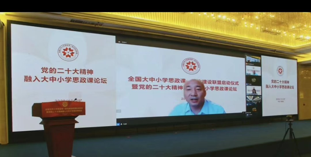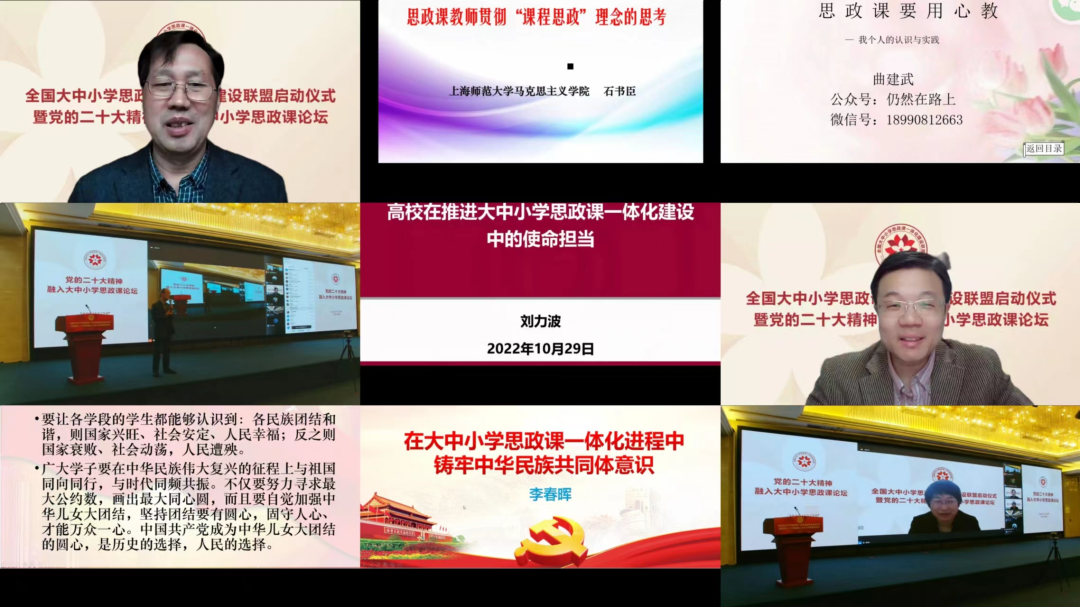為深入貫徹習(xí)近平總書記關(guān)于“要把統(tǒng)籌推進(jìn)大中小學(xué)思政課一體化建設(shè)作為一項(xiàng)重要工程”的重要指示精神,認(rèn)真落實(shí)中辦、國(guó)辦印發(fā)的《關(guān)于深化新時(shí)代學(xué)校思想政治理論課改革創(chuàng)新的若干意見》等相關(guān)文件精神,協(xié)同推進(jìn)全國(guó)大中小學(xué)思政課一體化建設(shè),更好發(fā)揮思政課落實(shí)立德樹人根本任務(wù)的關(guān)鍵課程作用。2022年10月29日,由江西省委教育工委、省教育廳指導(dǎo),北京師范大學(xué)、哈爾濱工業(yè)大學(xué)、石河子大學(xué)、江西師范大學(xué)、山東師范大學(xué)、常州大學(xué)、汕頭大學(xué)、喀什大學(xué)、景德鎮(zhèn)陶瓷大學(xué)主辦,景德鎮(zhèn)市教育體育局及9所高校馬克思主義學(xué)院承辦的全國(guó)大中小學(xué)思政課一體化建設(shè)聯(lián)盟啟動(dòng)儀式暨黨的二十大精神融入大中小學(xué)思政課論壇通過線上線下相結(jié)合的方式舉行。教育系統(tǒng)有關(guān)領(lǐng)導(dǎo)、全國(guó)知名專家學(xué)者和優(yōu)秀思政課教師參會(huì),共同協(xié)力推進(jìn)全國(guó)大中小學(xué)思政課一體化建設(shè)的理論與實(shí)踐。呼和浩特市第一中學(xué)黨委書記、校長(zhǎng)馬波應(yīng)邀參加此次論壇,做了《守望相助, 逐夢(mèng)共遠(yuǎn)——大中小學(xué)思政課一體化高質(zhì)量發(fā)展的實(shí)踐與思考》的主題發(fā)言,呼和浩特市第一中學(xué)政治教研組全組教師線上參加了此次論壇活動(dòng)。