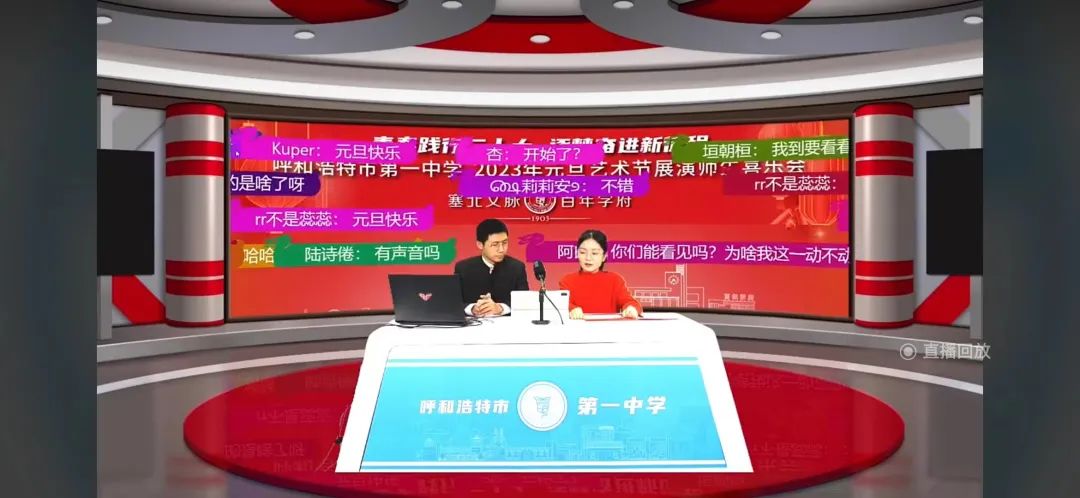 元月冬風(fēng)吹動人,旦出云彩亦傾城,在元旦即將來臨之際,呼和浩特市第一中學(xué)于2022年12月30日晚七點半,開啟了主題為:青春踐行二十大、逐夢奮進新征程-呼和浩特市第一中學(xué)2023年元旦藝術(shù)節(jié)展演師生喜樂會,與以往不相同的是,今年的晚會是線上舉行,除師生專會場外,各大播放平臺共計50萬人一同在線觀看了本次演出。