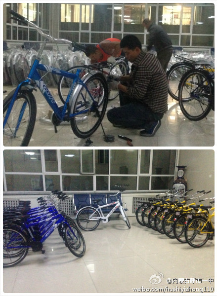 2013年9月25日著名慈善家陳光標(biāo)為我校捐贈的一批綠色環(huán)保低碳出行自行車已運達(dá)我校,現(xiàn)于我校卓遠(yuǎn)樓進(jìn)行組裝。