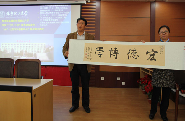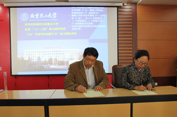 2015年10月15日,北京化工大學(xué)的許海軍教授、David教授等一行專家蒞臨我校,與我校續(xù)簽優(yōu)秀生源基地校協(xié)議。北京化工大學(xué)是教育部直屬的全國(guó)重點(diǎn)大學(xué),是國(guó)家“211工程”和國(guó)家“985優(yōu)勢(shì)學(xué)科創(chuàng)新平臺(tái)”重點(diǎn)建設(shè)高校。簽約儀式上,雙方領(lǐng)導(dǎo)簽署了優(yōu)質(zhì)生源基地協(xié)議,并進(jìn)行揭牌儀式。