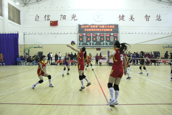 呼市一中女排在剛剛結(jié)束的2015年“體彩杯”內(nèi)蒙古自治區(qū)首屆排球項(xiàng)目特色學(xué)校錦標(biāo)賽中,力壓群雄,從參賽的26支代表隊(duì)中脫穎而出,勇奪冠軍!讓我們?yōu)橐恢信藕炔?!讓我們?yōu)榱瞬黄鸬呐抨?duì)員喝彩!讓我們?yōu)樾燎诘呐徘蜿?duì)教練喝彩!讓我們?yōu)閭ゴ蟮囊恢泻炔剩?