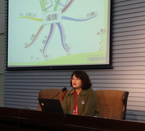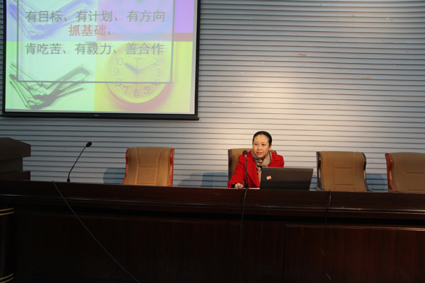 孟艷華老師代表班主任分享了"學(xué)生成績分析的方法"