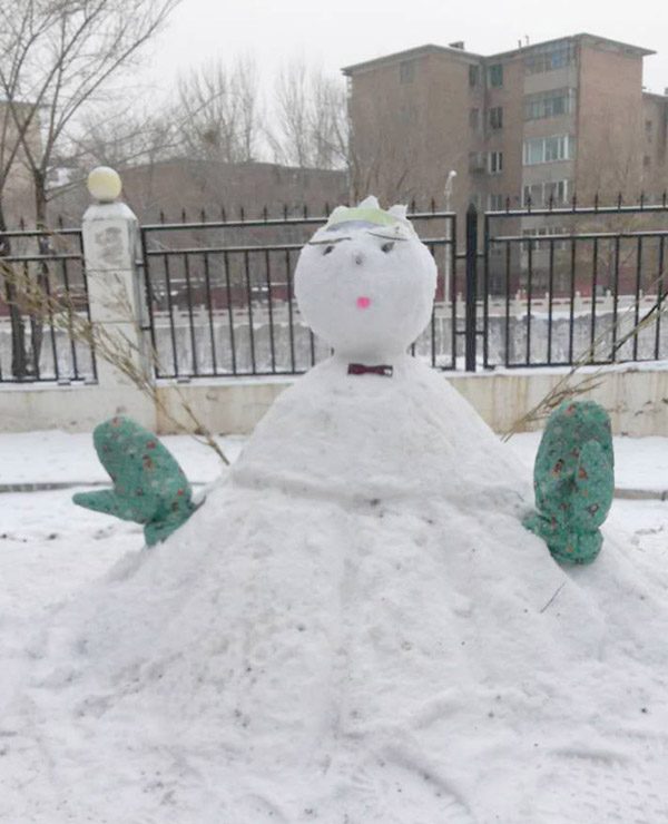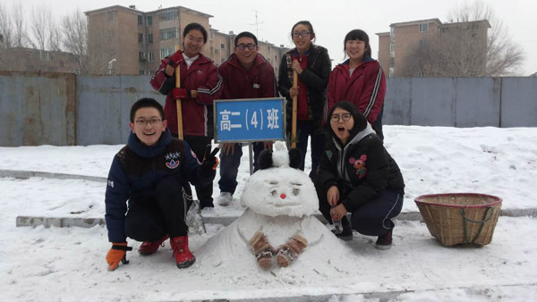夢(mèng)寐以求的一場(chǎng)大雪洋洋灑灑的到來(lái),一夜之間,美麗的呼市一中校園變成了一片粉妝玉砌的世界。白的樹(shù)、白的樓房、白的操場(chǎng)。。。。。。。這銀裝素裹的校園,變成了同學(xué)們無(wú)限遐想的童話世界。美妙的課間過(guò)后,校園里出現(xiàn)了無(wú)數(shù)個(gè)可愛(ài)的、神態(tài)各異的雪孩子,看看吧。。。。。