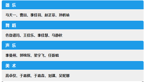學校聘請專家擔任本次術科考試評委,并于2018年4月15日對報考藝術類的考生進行了術科復試,招生紀檢組進行全程監(jiān)督。經(jīng)評委會、學??己祟I導小組研究決定,現(xiàn)將各項目術科擬錄取名單公布如下(排名不分先后)。