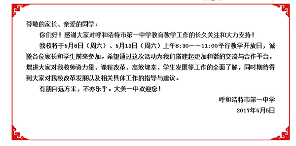 呼市一中2017年“校園開(kāi)放日”邀請(qǐng)函
